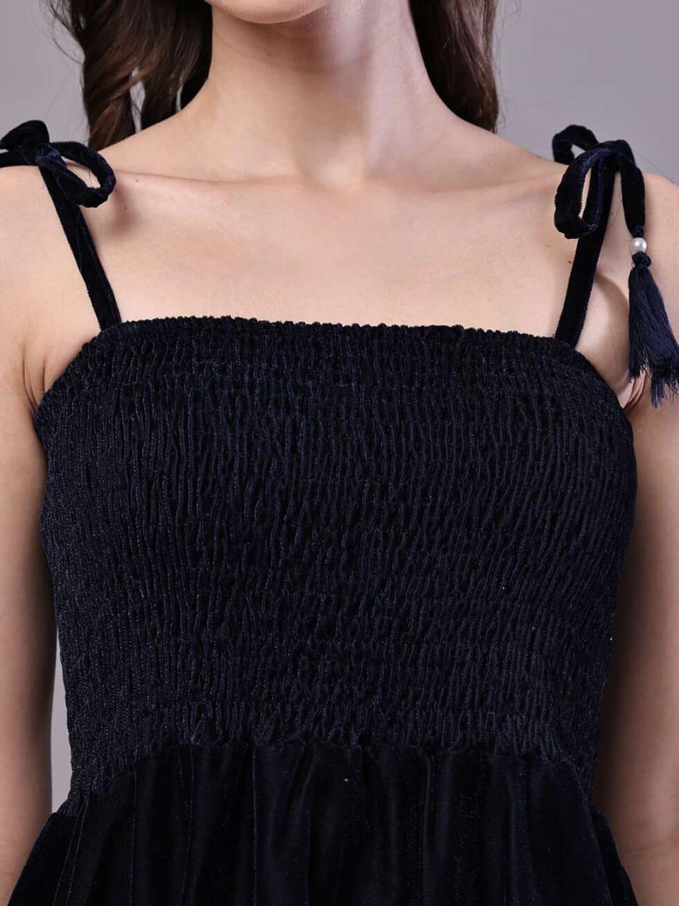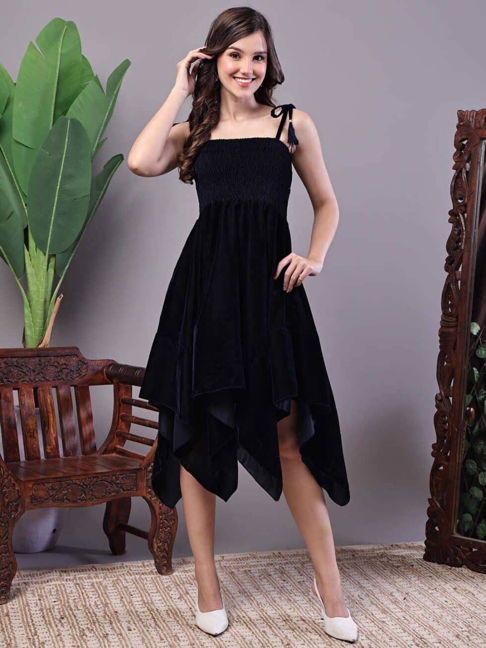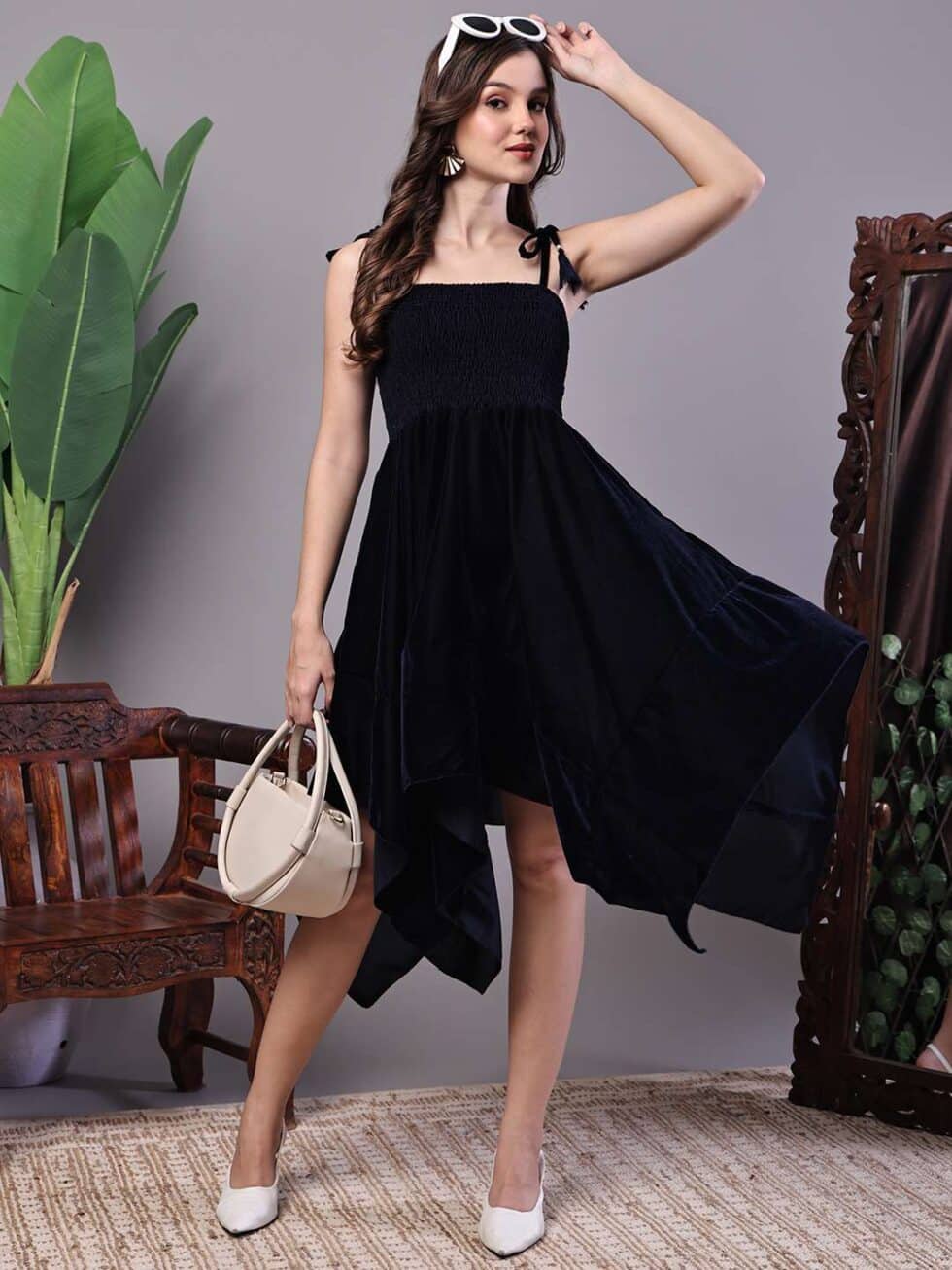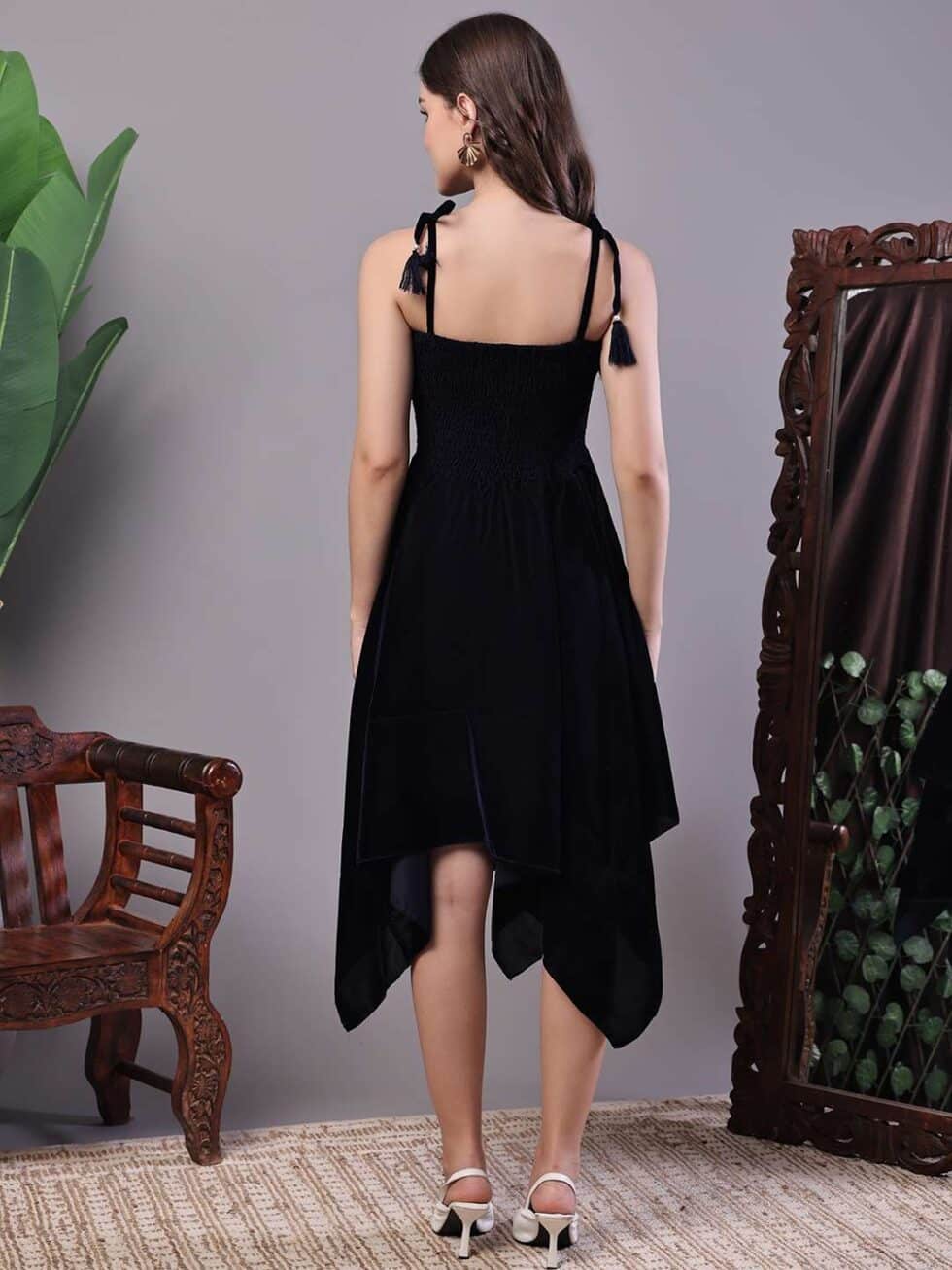 Women’s Junglee Black Velvet Party Midi Dress with Asymmetrical Hemline Midi Dresses